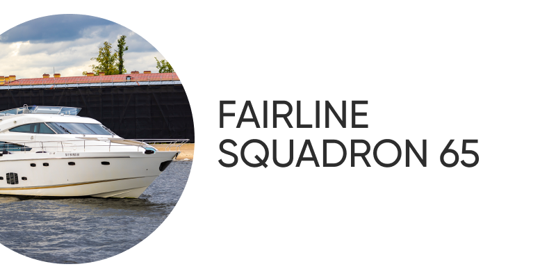 Fairline Squadron 65 — большая яхта длиной около 21 метра и шириной около 5,5 метров. Ее элегантный и современный дизайн сочетает в себе высококачественные материалы и отделку. Спальные каюты, салоны и кухня обеспечивают комфортное пребывание для до 16 человек. Яхта идеально подходит для больших компаний: отдыха с друзьями или корпоративных мероприятий. Fairline Squadron 65 оборудована современной техникой, включая кондиционеры, телевизоры, аудио и видео системы высокого разрешения.